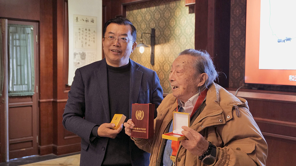 会议第五个议程,鸿山支代表培民老先生发言。此次特邀从南京赶来的鸿山支宗亲培民,这是第一次跟大家面对面,他怀着激动的心情跟大家分享了他的经历,并向理事会捐赠了他获得的联合国和平勋章和“时代楷模”宣传册,晓明会长承诺会好好保存并祝愿老先生身体安康!